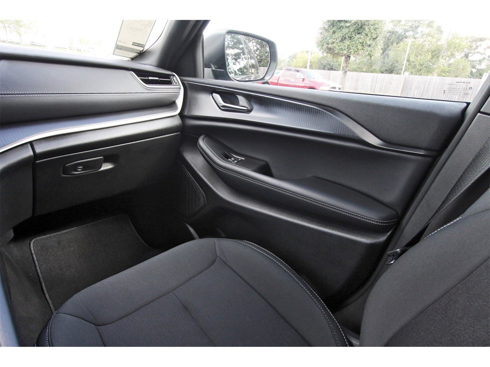 Luxury Tech Group I (115V Auxiliary Power Outlet, Heated Front Seats, Heated Steering Wheel, Power Liftgate, Rain Sensitive Windshield Wipers, Remote Start System, Satellite Radio, Selectable Tire Fill Alert, and Wireless Charging Pad), Quick Order Package 23D Laredo X (Laredo X, Power Sunroof, and Wheels: 18 x 8 Fully Painted Aluminum), 4-Wheel Disc Brakes, 6 Speakers, ABS brakes, Air Conditioning, Alloy wheels, AM/FM radio: SiriusXM, Anti-whiplash front head restraints, Automatic temperature control, Brake assist, Bumpers: body-color, Cloth Seats, Compass, Delay-off headlights, Driver door bin, Driver vanity mirror, Dual front impact airbags, Dual front side impact airbags, Electronic Stability Control, Emergency communication system, Four wheel independent suspension, Front anti-roll bar, Front Bucket Seats, Front Center Armrest w/Storage, Front dual zone A/C, Front License Plate Bracket, Front reading lights, Fully automatic headlights, Heated door mirrors, Illuminated entry, Knee airbag, Low tire pressure warning, Model Year Tracking, Normal Duty Suspension, Occupant sensing airbag, Outside temperature display, Overhead airbag, Overhead console, Panic alarm, ParkView Rear Back-Up Camera, Passenger door bin, Passenger vanity mirror, Power door mirrors, Power driver seat, Power steering, Power windows, Radio data system, Radio: Uconnect 5 with 8.4 Display, Rear anti-roll bar, Rear reading lights, Rear window defroster, Rear window wiper, Remote keyless entry, Security system, Speed control, Speed-Sensitive Wipers, Split folding rear seat, Spoiler, Steering wheel mounted audio controls, Tachometer, Telescoping steering wheel, Tilt steering wheel, Traction control, Trip computer, Variably intermittent wipers, Voltmeter, and Wheels: 17 x 6.5 Fully Painted Aluminum.