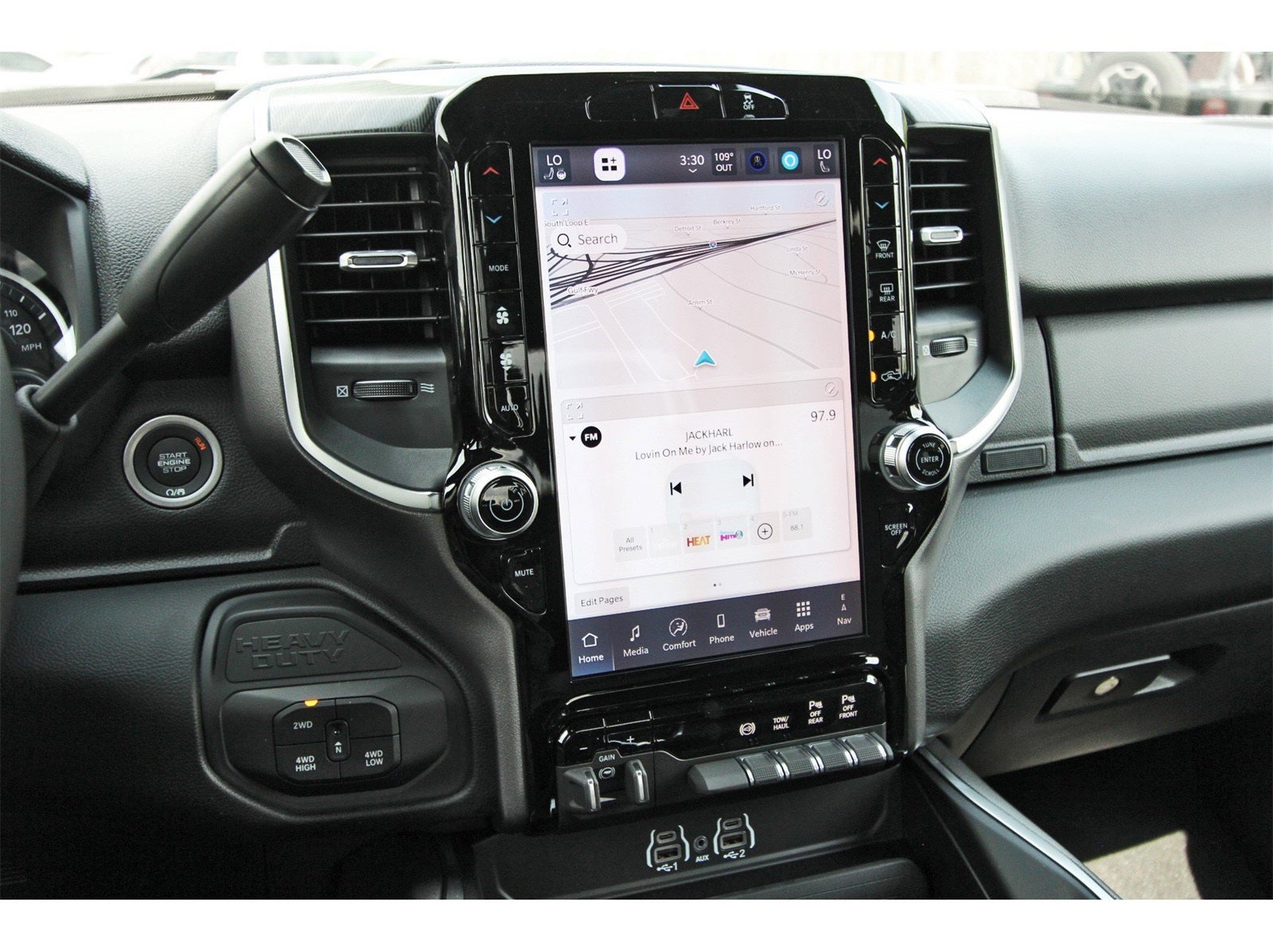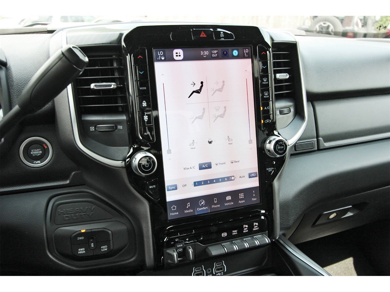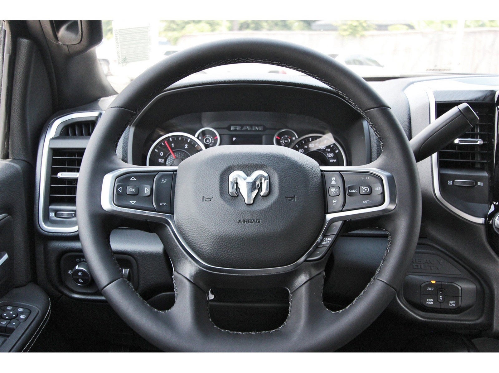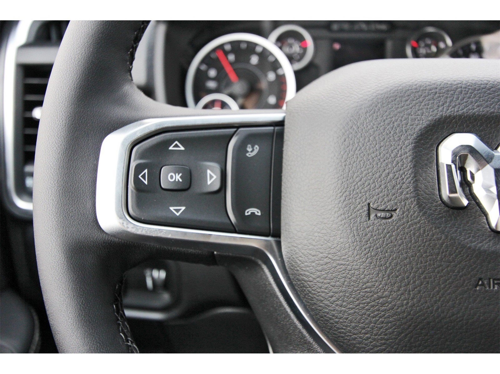 Big Horn Level 1 Plus Equipment Group (12 Touchscreen Display, 2 Way Rear Headrest Seat, 2nd Row In Floor Storage Bins, 4 Way Front Headrests, 40/20/40 Split Bench Seat, 4G LTE Wi-Fi Hot Spot, 9 Alpine Speakers w/Subwoofer, Air Conditioning ATC w/Dual Zone Control, Alexa Built-In, Anti-Spin Differential Rear Axle, Apple CarPlay, Auto Power-Folding Mirrors, Auto-Dimming Rear-View Mirror, Black Exterior Mirrors, Connected Travel & Traffic Services, Connectivity - US/Canada, Dual Glove Boxes, Emergency Vehicle Alert System (EVAS), Exterior Mirrors Courtesy Lamps, Exterior Mirrors w/Heating Element, Exterior Mirrors w/Supplemental Signals, Foam Bottle Insert (Door Trim Panel), Folding Flat Load Floor Storage, Footwell Courtesy Lamp, Forward & Reverse Utility Lights, Front Armrest w/Cupholders, Front Center Seat Cushion Storage, Front Seat Back Map Pockets, Global Telematics Box Module (TBM), Glove Box Lamp, Google Android Auto, GPS Antenna Input, GPS Navigation, HD Radio, Integrated Voice Command w/Bluetooth®, LED Bed Lighting, Locking Lower Glove Box, Luxury Steering Wheel, Manual Adjust 4-Way Front Passenger Seat, Mirror Running Lights, MOPAR Deployable Bed Step, MOPAR Spray In Bedliner, Off-Road Info Pages, Power 2-Way Driver Lumbar Adjust, Power Adjust 8-Way Driver Seat, Power Adjust Mirrors, Power Adjustable Convex Aux Mirrors, Power Heated Folding Telescopic Mirrors, Power Telescoping Mirrors, Premium Cloth 40/20/40 Bench Seat, Radio: Uconnect 5 Nav w/12.0 Display, Rear 60/40 Folding Seat, Rear Dome w/On/Off Switch Lamp, Remote Start System, Remote USB Port - Charge Only, Selectable Tire Fill Alert, SiriusXM Radio Service, SiriusXM w/360L, Steering Wheel Mounted Audio Controls, Storage Tray, and Trailer Tow Pages), Heated Seats & Wheel Group (Heated Front Seats and Heated Steering Wheel), Quick Order Package 24Y Lone Star (Regional) (Lone Star Badge), 4-Wheel Disc Brakes, 5th Wheel/Gooseneck Towing Prep Group, 6 Speakers, ABS brakes, Air Conditioning, Alloy wheels, AM/FM radio: SiriusXM, Apple CarPlay/Android Auto, Brake assist, Bumpers: chrome, Clearance Lamps, Cloth 40/20/40 Bench Seat, Compass, Delay-off headlights, Delete Deployable Bed Step (DISC), Driver door bin, Dual front impact airbags, Dual front side impact airbags, Electronic Stability Control, Engine Block Heater, Front anti-roll bar, Front Center Armrest w/Storage, Front fog lights, Front License Plate Bracket, Front reading lights, Fully automatic headlights, Heated door mirrors, Illuminated entry, Low tire pressure warning, Manual Adjust 4-Way Driver Seat, MOPAR Front & Rear Rubber Floor Mats, Occupant sensing airbag, Outside temperature display, Overhead airbag, Overhead console, Panic alarm, ParkView Rear Back-Up Camera, Passenger door bin, Passenger vanity mirror, Power door mirrors, Power steering, Power windows, Radio data system, Radio: Uconnect 5 w/8.4 Display, Rear anti-roll bar, Rear Folding Seat, Rear seat center armrest, Rear step bumper, Rear window defroster, Remote keyless entry, Security system, Speed control, Tachometer, Tilt steering wheel, Traction control, Trip computer, Turn signal indicator mirrors, Variably intermittent wipers, Vinyl 2nd Row Seat, Voltmeter, and Wheels: 18 x 8.0 Polished Aluminum.