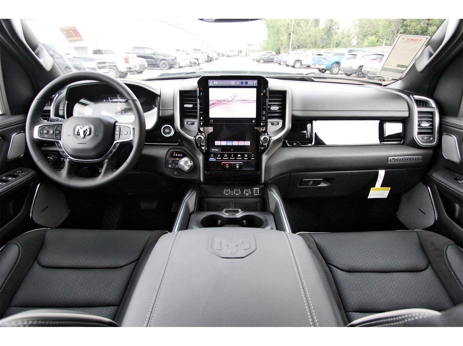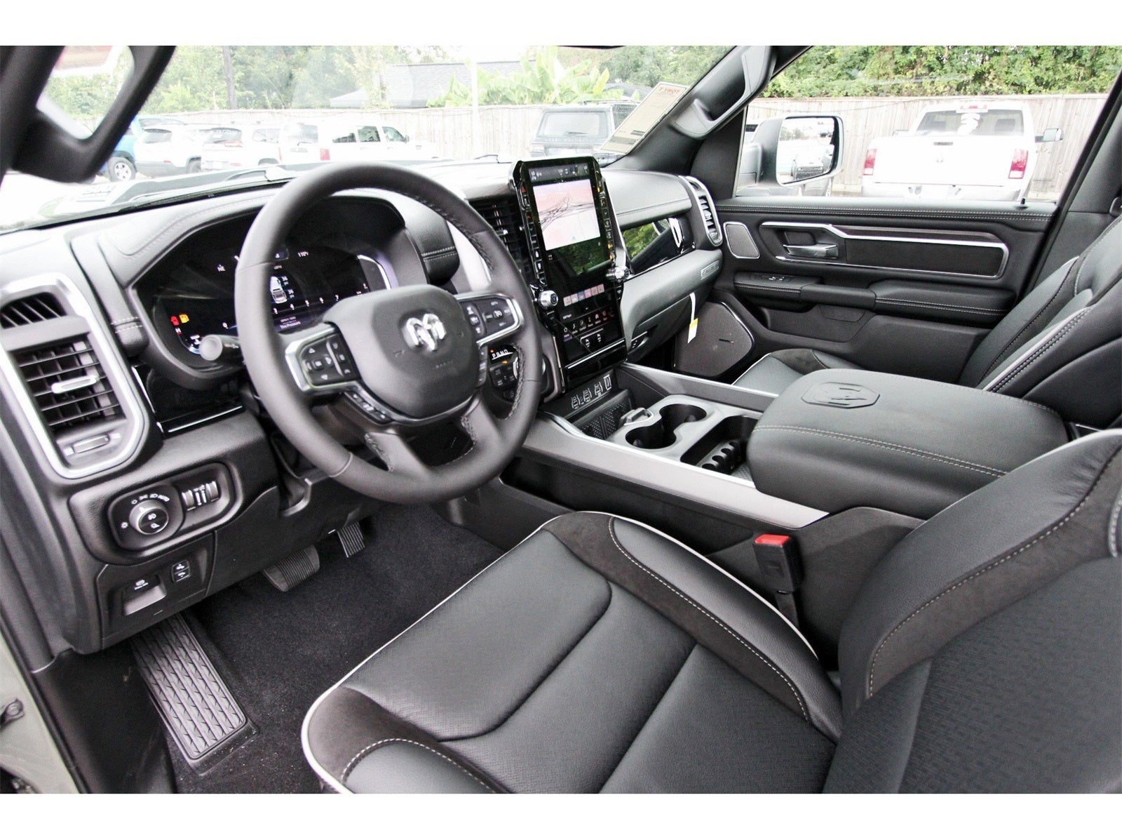 Laramie Level 2 Equipment Group (14.4 Touchscreen Display, 4G LTE Wi-Fi Hot Spot, Cluster 12 TFT Color Display, Connected Travel and Traffic Services, Connectivity - US/Canada, Front Passenger Interactive Display, GPS Navigation, Harman/Kardon 19 Speaker Premium Sound, Integrated Center Stack Radio, Integrated Voice Command with Bluetooth®, Power Tailgate, Radio: Uconnect 5 Nav with 14.4 Display, Rain Sensitive Windshield Wipers, SiriusXM Radio Service, SiriusXM with 360L, and USB Host Flip), Night Edition (Accent Color Door Handles, Accent Color Premium Power Mirrors, Accent Color Tailgate Handle, Anti-Spin Differential Rear Axle, Auto Power-Folding Mirrors, Auto-Dimming Exterior Driver Mirror, Black Exterior Truck Badging, Black Headlamp Bezels, Black Interior Accents, Black Painted Exterior Mirrors Caps, Black Tail Lamp Bezels, Body Color Front Bumper, Body Color Rear Bumper with Step Pads, Convex Wide-Angle Exterior Mirror Insert, Dual Exhaust with Black Tips, Exterior Mirrors Approach Lamps, Exterior Mirrors Courtesy Lamps, Exterior Mirrors with Heating Element, Exterior Mirrors with Memory, Exterior Mirrors with Supplemental Signals, Grille Surround 3 Black Texture 2 Black, Pirelli Brand Tires, Proximity Approach/Departure Lamps, RAM Grille Badge - Black, Sport Performance Hood, and Wheels: 22 x 9 Forged Aluminum), Quick Order Package 21H Laramie, 10 Speakers, 3.55 Rear Axle Ratio, 4-Wheel Disc Brakes, ABS brakes, Active Noise Control System, Air Conditioning, Alloy wheels, AM/FM radio: SiriusXM with 360L, Apple CarPlay/Android Auto, Audio memory, Auto High-beam Headlights, Auto-dimming door mirrors, Auto-dimming Rear-View mirror, Automatic temperature control, Brake assist, Bumpers: chrome, Chrome Exterior Mirrors, Compass, Delay-off headlights, Dome Dual LED Reading Lamp, Driver door bin, Driver vanity mirror, Dual front impact airbags, Dual front side impact airbags, Dual-Pane Panoramic Sunroof, Electronic Stability Control, Front anti-roll bar, Front Bucket Seats, Front Center Armrest w/Storage, Front dual zone A/C, Front fog lights, Front License Plate Bracket, Front reading lights, Front wheel independent suspension, Fully automatic headlights, Garage door transmitter, Heated door mirrors, Heated front seats, Heated rear seats, Heated steering wheel, Illuminated entry, Leather steering wheel, Leather Trimmed Bucket Seats, LED Dome/Reading Lamp, Low tire pressure warning, Memory seat, MOPAR Front and Rear Rubber Floor Mats, Navigation System, Occupant sensing airbag, Off-Road Information Pages, Outside temperature display, Overhead airbag, Overhead console, Panic alarm, ParkView Rear Back-Up Camera, Passenger door bin, Passenger vanity mirror, Power Deployable Running Boards, Power door mirrors, Power driver seat, Power passenger seat, Power steering, Power windows, Radio data system, Radio: Uconnect 5 Navigation with 12.0 Display, RAM Grille Badge - Chrome, Rear anti-roll bar, Rear reading lights, Rear seat center armrest, Rear step bumper, Remote keyless entry, Security system, Speed control, Split folding rear seat, Steering wheel mounted audio controls, Tachometer, Telescoping steering wheel, Tilt steering wheel, Traction control, Trip computer, Turn signal indicator mirrors, Variably intermittent wipers, Ventilated front seats, Voltmeter, and Wheels: 20 x 9 Premium Paint/Polish.