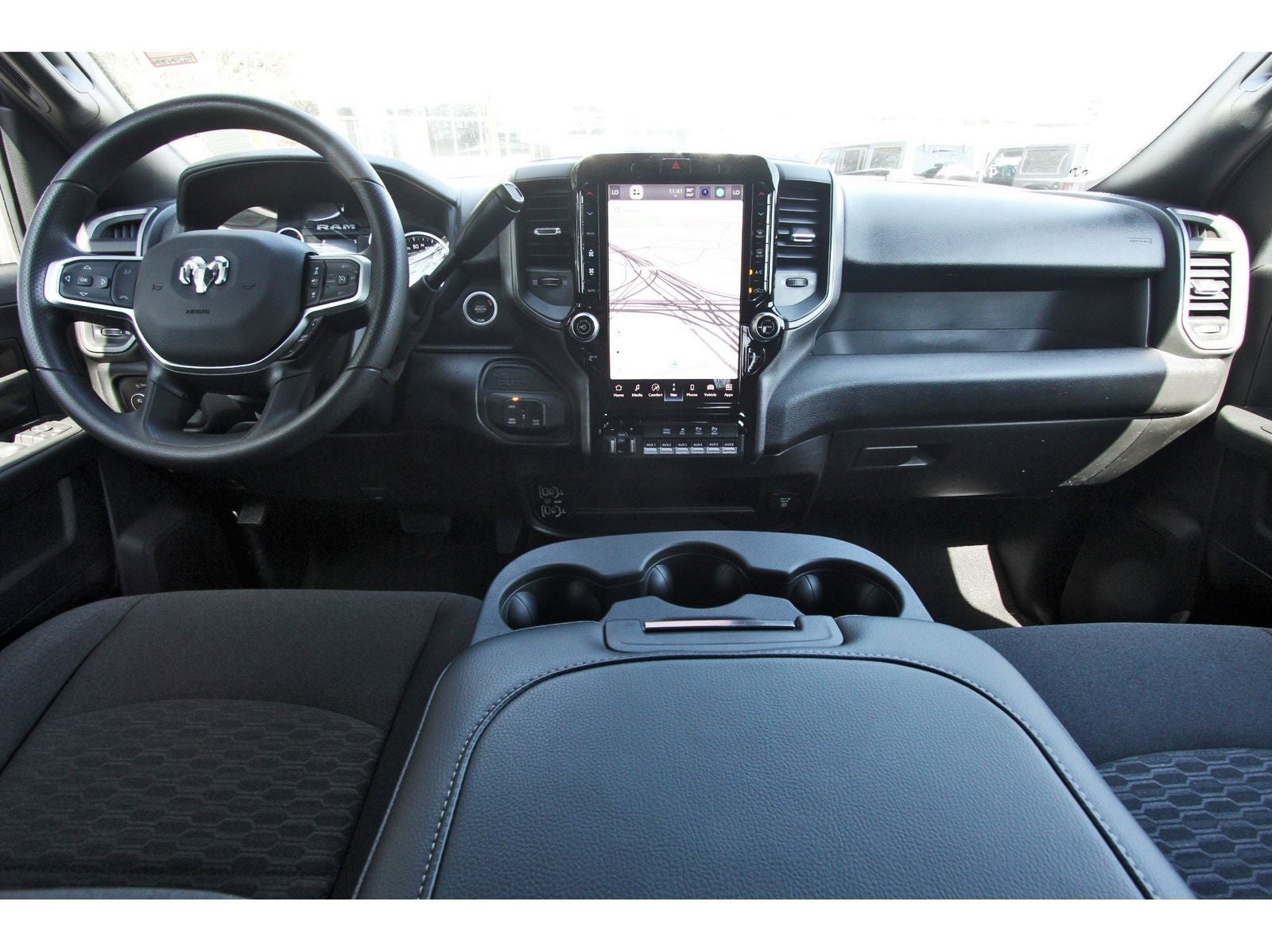 Quick Order Package 2UA Tradesman, Tradesman Level 1 Equipment Group (115-Volt Auxiliary Front Power Outlet, 12 Touchscreen Display, 400W Inverter, 4G LTE Wi-Fi Hot Spot, Air Conditioning ATC with Dual Zone Control, Alexa Built-in, Anti-Spin Differential Rear Axle, Apple CarPlay, Auto-Dimming Rear-View Mirror, Connected Travel and Traffic Services, Connectivity - US/Canada, Disassociated Touchscreen Display, Emergency Vehicle Alert System (EVAS), Exterior 115V AC Outlet, For Details, Visit DriveUconnect.com, For More Info, Call 800-643-2112, Global Telematics Box Module, Google Android Auto, GPS Antenna Input, GPS Navigation, HD Radio, Integrated Voice Command with Bluetooth®, Off-Road Info Pages, Radio: Uconnect 5 Navigation with 12.0 Display, Rear Power Sliding Window, Selectable Tire Fill Alert, SiriusXM Radio Service, SiriusXM with 360L, Tinted Acoustic Windshield Glass, and Trailer Tow Pages), 2 Way Rear Headrest Seat, 3.73 Axle Ratio, 4 Way Front Headrests, 4-Wheel Disc Brakes, 40/20/40 Split Bench Seat, 50 Gallon Fuel Tank, 5th Wheel/Gooseneck Towing Prep Group, 6 Speakers, ABS brakes, Air Conditioning, AM/FM radio: SiriusXM, Apple CarPlay/Android Auto, Black Exterior Mirrors, Black Wheel Center Hub, Brake assist, Clearance Lamps, Compass, Dash Pass Thru Wire Circuits, Delay-off headlights, Driver door bin, Dual front impact airbags, Dual front side impact airbags, Electronic Stability Control, Front anti-roll bar, Front Armrest with Cupholders, Front Center Armrest w/Storage, Front fog lights, Front License Plate Bracket, Front reading lights, Fully automatic headlights, Illuminated entry, Instrument Panel Mounted Auxiliary Switches, Low tire pressure warning, Manual Adjust 4-Way Driver Seat, Manual Adjust 4-Way Front Passenger Seat, Manual Folding Exterior Mirrors, Manual Telescoping Mirrors, Mopar Black Tubular Side Steps, Occupant sensing airbag, Outside temperature display, Overhead airbag, Overhead console, Panic alarm, ParkView Rear Back-Up Camera, Passenger door bin, Passenger vanity mirror, Power steering, Power windows, Radio data system, Radio: Uconnect 5 with 8.4 Display, Rear anti-roll bar, Rear Folding Seat, Rear step bumper, Rear window defroster, Remote keyless entry, Remote USB Port - Charge Only, Speed control, Storage Tray, Tachometer, Tilt steering wheel, Traction control, Variably intermittent wipers, Voltmeter, and Wheels: 17 x 7.5 Black Steel StyleD.