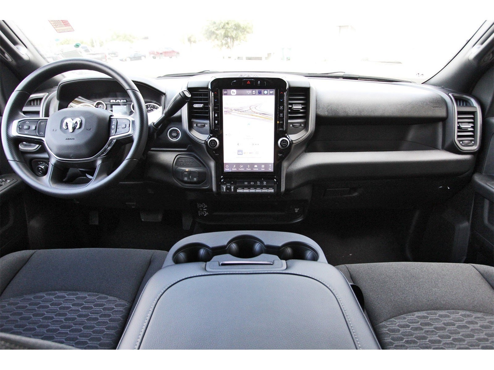 Quick Order Package 24A Tradesman, Tow-Mode Digital Rear View Mirror Package (Digital Rearview Mirror and Tow-Mode Camera (Wired)), Tradesman Level 2 Equipment Group (115-Volt Auxiliary Front Power Outlet, 12 Touchscreen Display, 2 Way Rear Headrest Seat, 4 Way Front Headrests, 40/20/40 Split Bench Seat, 400W Inverter, 4G LTE Wi-Fi Hot Spot, Air Conditioning ATC with Dual Zone Control, Alexa Built-in, Apple CarPlay, Auto-Dimming Rear-View Mirror, Black Exterior Mirrors, Bright Front Bumper, Bright Rear Bumper, Carpet Floor Covering, Center Hub, Chrome Grille Surround, Cloth 40/20/40 Bench Seat, Connected Travel and Traffic Services, Connectivity - US/Canada, Convenience Group, Disassociated Touchscreen Display, Emergency Vehicle Alert System (EVAS), Exterior 115V AC Outlet, Exterior Mirrors Courtesy Lamps, Exterior Mirrors with Heating Element, Exterior Mirrors with Supplemental Signals, For Details Visit DriveUconnect.com, For More Info, Call 800-643-2112, Front and Rear Floor Mats, Front Armrest with Cupholders, Global Telematics Box Module, Google Android Auto, GPS Antenna Input, GPS Navigation, HD Radio, Integrated Voice Command with Bluetooth®, Manual Adjust 4-Way Driver Seat, Manual Adjust 4-Way Front Passenger Seat, Manual Folding Exterior Mirrors, Manual Telescoping Mirrors, Matte Black Mesh with Chrome Grille, Mirror Running Lights, Mopar Black Tubular Side Steps, Off-Road Information Pages, ParkSense Front/Rear Park Assist System, Power Adjust Mirrors, Power Heat Fold Telescopic Mirrors, Power-Adjustable Convex Aux Mirrors, Radio: Uconnect 5 Navigation with 12.0 Display, Rear Folding Seat, Rear Power Sliding Window, Remote USB Port - Charge Only, Selectable Tire Fill Alert, SiriusXM Radio Service, SiriusXM with 360L, Storage Tray, Tinted Acoustic Windshield Glass, and Trailer Tow Pages), 4-Wheel Disc Brakes, 50 Gallon Fuel Tank, 5th Wheel/Gooseneck Towing Prep Group, 6 Speakers, 6000# Front Axle with Hub Extension, ABS brakes, Air Conditioning, AM/FM radio: SiriusXM, Apple CarPlay/Android Auto, Black Wheel Center Hub, Box and Rear Fender Clearance Lamps, Brake assist, Clearance Lamps, Compass, Dash Pass Thru Wire Circuits, Delay-off headlights, Driver door bin, Dual front impact airbags, Dual front side impact airbags, Dual Rear Wheels, Electronic Stability Control, Front anti-roll bar, Front Center Armrest w/Storage, Front fog lights, Front License Plate Bracket, Front reading lights, Fully automatic headlights, Illuminated entry, Instrument Panel Mounted Auxiliary Switches, Low tire pressure warning, Nexen Brand Tires, Occupant sensing airbag, Outside temperature display, Overhead airbag, Overhead console, Panic alarm, ParkView Rear Back-Up Camera, Passenger door bin, Passenger vanity mirror, Power steering, Power windows, Radio data system, Radio: Uconnect 5 with 8.4 Display, Rear step bumper, Rear Wheelhouse Liners, Rear window defroster, Remote keyless entry, Speed control, Tachometer, Tilt steering wheel, Traction control, Variably intermittent wipers, Voltmeter, Wheels: 17 x 6.0 Polished Aluminum, and Wheels: 18 x 8.0 Black Painted SteeL.