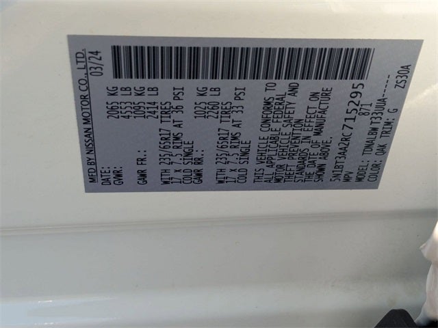 Check out all these great option's Diversified Certified (DPOV) Certified, 17 Aluminum Alloy Wheels, 4 Speakers, 4-Wheel Disc Brakes, 5.676 Axle Ratio, ABS brakes, Air Conditioning, Alloy wheels, AM/FM radio: SiriusXM, Auto High-beam Headlights, Blind Spot Warning, Brake assist, Bumpers: body-color, Cloth Seat Trim, Delay-off headlights, Driver door bin, Driver vanity mirror, Dual front impact airbags, Dual front side impact airbags, Electronic Stability Control, Four wheel independent suspension, Front anti-roll bar, Front Bucket Seats, Front Center Armrest, Front reading lights, Fully automatic headlights, Illuminated entry, Knee airbag, Low tire pressure warning, NissanConnect featuring Apple CarPlay and Android Auto, Occupant sensing airbag, Outside temperature display, Overhead airbag, Overhead console, Panic alarm, Passenger door bin, Passenger vanity mirror, Power door mirrors, Power steering, Power windows, Radio data system, Radio: AM/FM NissanConnect, Rear anti-roll bar, Rear Parking Sensors, Rear seat center armrest, Rear side impact airbag, Rear window defroster, Rear window wiper, Remote keyless entry, Speed control, Speed-Sensitive Wipers, Split folding rear seat, Spoiler, Steering wheel mounted audio controls, Tachometer, Telescoping steering wheel, Tilt steering wheel, Traction control, Trip computer, and Variably intermittent wipers Get Rolling Today!!! Come see us today!!! Family owned and operated!!! We also ship!!! Visit us at 2801 St Matthews Rd Orangeburg SC 29118 or www.tonytcdjr.com 803-534-5251.